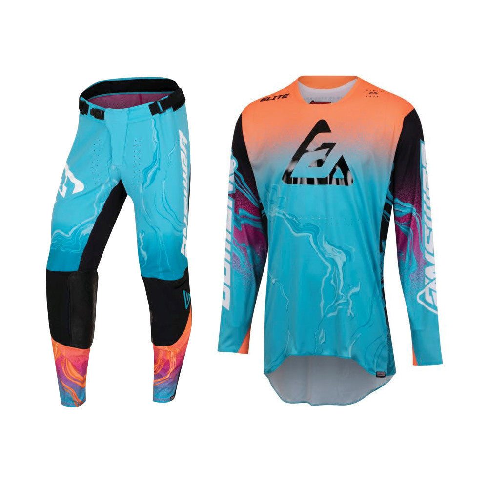 Answer Racing 2023 Elite Fusion Jersey Pant Combo Astana/Hyper Orange/Rhodamine