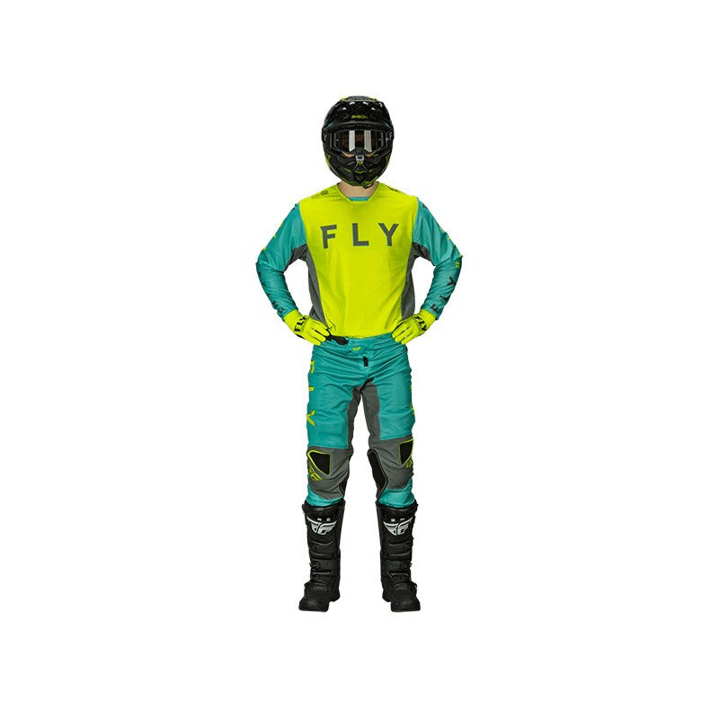 FLY Racing 2024 Kinetic Mesh Kore Jersey Pant Combo - Hi-Vis/Teal/Grey