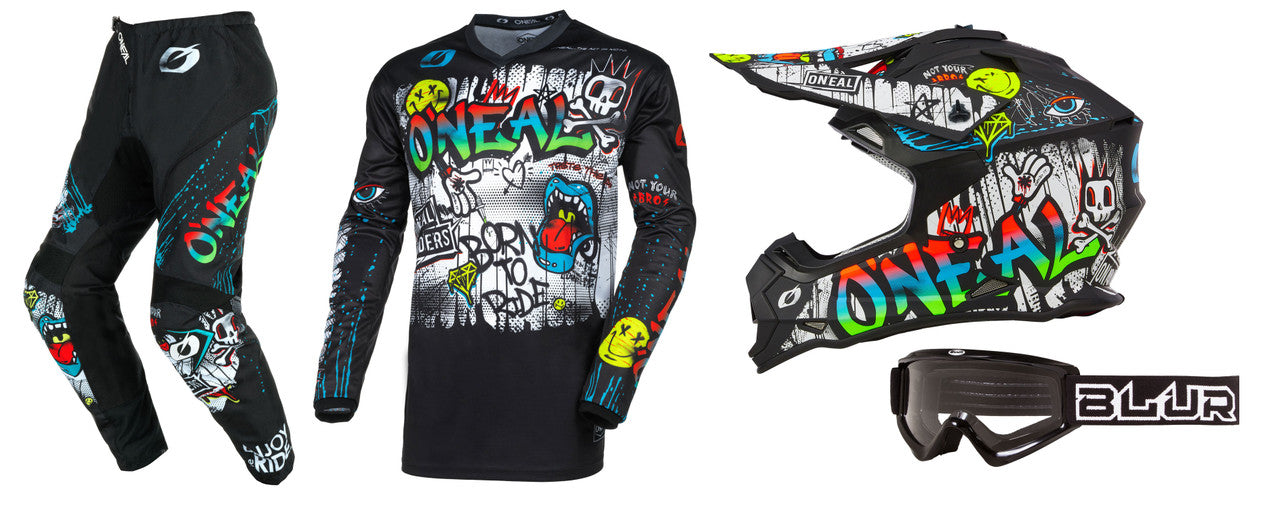 O'Neal 2024 Element Rancid Jersey Pant Offroad Helmet with Goggle Combo Black/White