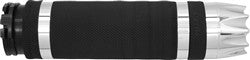 The Air-SS incorporates an air cushion system similar to the Air Cushioned grips that will reduce some of the unwanted vibrations, and has the same grippy texture as the original Air Cushion grip. Available in triple chrome plated, or black anodized, billet aluminum ends. Also available in heated version. Heated grips have 4 heat settings indicated by LED lights and include a switch.Fits H-D Push Pull (‘84-up) & all Fly By Wire. Inside length 4.60”, OD 1.50”. Fits 1” bars. Sold in pairs.
