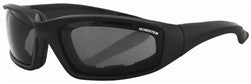 An updated version of our extremely popular Foamerz, these wrap around sunglasses are available in smoked, clear or amber anti-fog polycarbonate lenses. Closed cell foam allows ventilation while providing a cushioned lining to protect the eyes from wind and dust while flying down the road. The flexible, polycarbonate frame wraps securely around the face while rubber strips at the tip of each temple keeps the eyewear in place. For effortless transport, a microfiber pouch is also included.