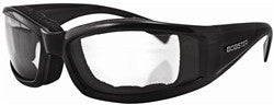 and the fleece lined open cell foam keep the wind and debris out of your eyes. Continuous wearing of this piece of eyewear from day into night is due to the photochromic lenses, which adjust to UV light. The lenses are shatter-resistant polycarbonate and optically correct so there is no distortion. The Invader comes with a carry case and microfiber cleaning cloth.