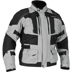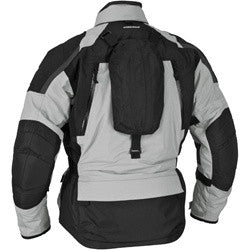 HYPERTEX™ waterproof & breathable outer shell, constructed of 420 denier rip-stop nylon and 300 denier high density nylon, durable and lightweight for ease of movement • Fully adjustable d3O T5 CE Armor in the shoulders and elbows delivers the same protection as standard CE foam armor, but is thinner and more flexible, resulting in a more comfortable fit. EVA dense foam back pad included A. Collar closure utilizes a slider snap that allows up to 1-1/2” adjustment for a personal fit B. Integrated into the collar is an under-thehelmet rain hood to keep water from running down your neck C. 1.5 liter hydration bladder included in removable backpack • Front left and right restraining loops for bladder tube make access easy D. Achieve maximum airflow with two 8” vertical chest intake vents, two 9” armpit intake vents and two 9” vertical rear exhaust vents. • Double storm flap front with snap and hook/loop closure that covers a #8 YKK® Vislon two-way main zipper to keep out the elements E. Dry Pockets will keep your stash dry–four front ones with flaps, protected by YKK #5 rubberized zippers on the chest and envelope closures on the bottom pockets. F. Large rear dry pouch with 14” mouth to stow insulated liner or personal property, protected by waterproof zipper and flap with spring snaps and hook/loop closure to keep it all intact and safe from the elements • Reflective taping front and back increases nighttime visibility • One time adjustable waist belt with hook and loop closure • Elbow and underarm waterproof and breathable stretch material for increased flexibility also diminishes binding • Compression straps on the bicep and forearm adjusts to fit you. Adjustable cuff uses hook and loop closure for a custom fit • Removable, fully insulated, thermal liner with wind blocking, adjustable, neoprene cuffs to block out the cold • Interior pocketing in all Firstgear jackets are in the same location, whether the liner is in or out. On the left side, chest high is a mobile device pocket with flap closure using hook and loop to secure – On the right side is a cargo pocket that is 12” wide and 8” tall to hold whatever you need for the adventure ahead • Jacket- to-pant 10” full conjunction zipper fits easily through liner portal and attaches to overpant • 2-year limited warranty