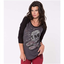 Metal Mulisha Womens Bites the Dust Raglan Tee - Charcoal