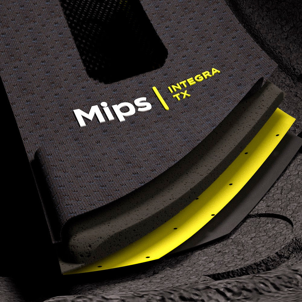 The Mips® Integra TX system complements the traditional fabric-and-foam comfort padding with an integrated low-friction layer. The system provides movement to help reduce rotational motion to the head in certain angled impacts, without altering comfort and fit or adding weight to the helmet.