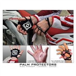 Palm Protectors are a very thin, protective layer offering full coverage protection of the palm as well as the saddle area between the index finger and thumb. The Palm Protectors also aid in reducing the dreaded “Arm Pump” by absorbing vibration transferred through the handlebars. Worn under the gloves, riders don’t even notice the ultra thin Palm Protectors, but they do recognize the vibration reduction and much needed protection against blisters.