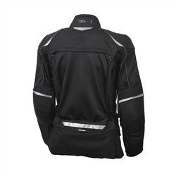 This is an amazingly versatile jacket. It is a windproof textile jacket for cool days, but fold down the inner windproof panels on the chest and back; open the full length arm vents and side torso vents, and you have maximum air flow on hot days. An additional removable zip out Airguard® waterproof liner means you can handle wet weather, and the included removable thermal EverHeat® liner keeps you warm when it gets cold. Sas-Tec® CE certified viscoelastic armor is used in shoulder s and elbows . From touring in cold wet climates, to commuting in hot humid places, the Yosemite jacket will handle it all.