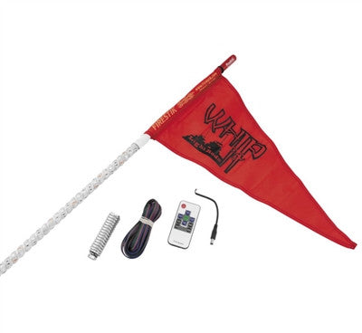 RF (Radio Frequency) Whips feature 25 different colors and functions, including flash, strobe and fade through colors. You can adjust speed and brightness or lock on one color. Deluxe Whips feature 120 different colors and functions, including flash, strobe, fade, chase and different color combinations from top, bottom and middle.
