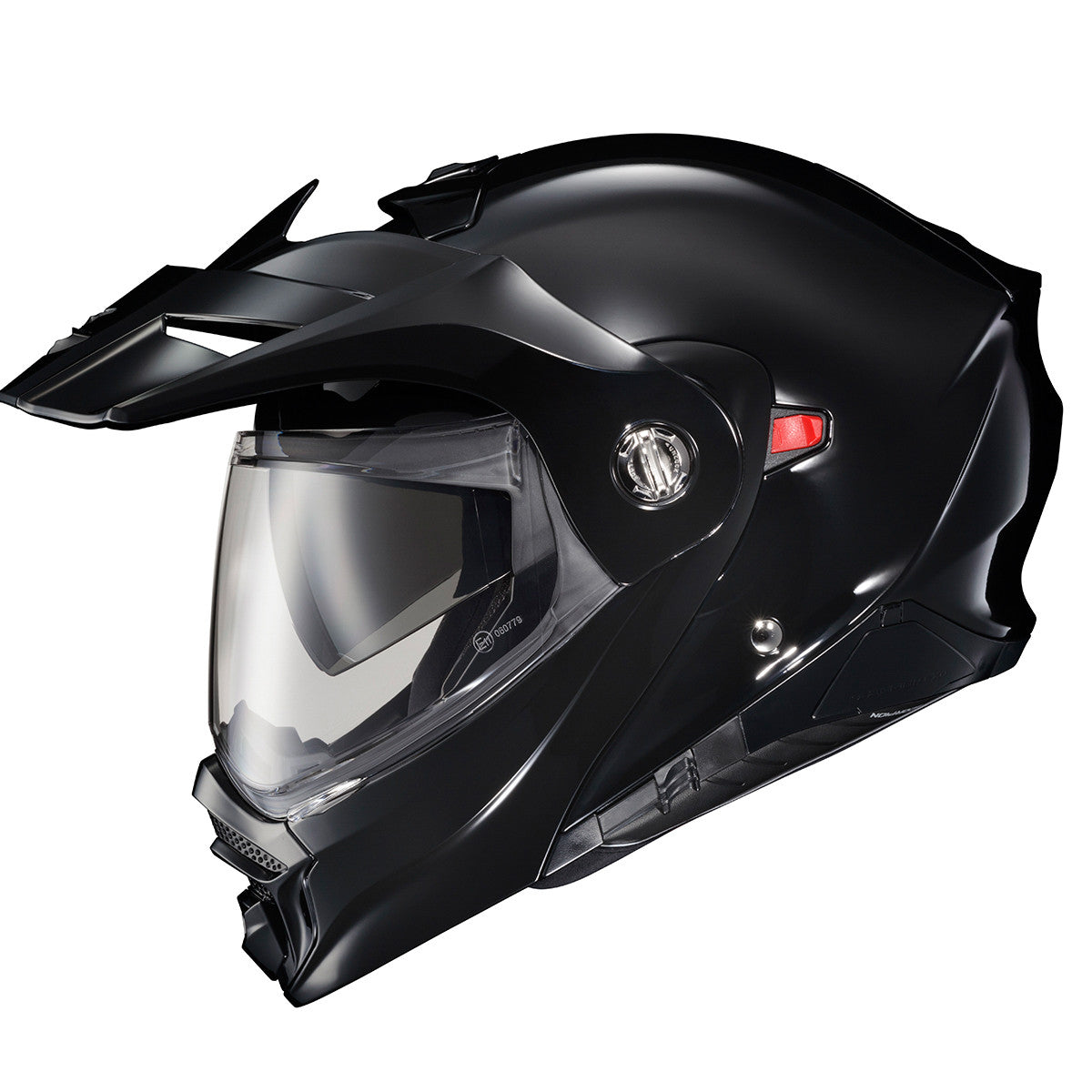 The EXO-AT960 Modular Helmet has evolved from one of the most popular Adventure Motorcycle helmets on the market; the EXO-AT950. Maintaining its high value (in addition to U.S. DOT Certification), ScorpionEXO has now added the latest ECE 22.06 Safety Rating, which requires a wider range of testing than the previous 22.05 certification. The EXO-AT960 can be used as a full face ADV helmet with external peak visor attached, or the peak visor can be removed for a more aerodynamic touring helmet. The oversized eye port is extremely wide for greater peripheral vision and downward visibility, and the modular chin bar can be conveniently flipped up. The internal drop down Speedview® sun-visor allows you to adjust to changing lighting conditions throughout the day. Additionally, the no-fog Everclear® face shield can be removed and you can use the EXO- AT960 with goggles for off-road use. Three shell sizes made of Advanced LG® Polycarbonate and dual density EPS, result in a helmet that is light weight, strong, and protective. And for those who need to stay connected, the EXO-AT960 was specifically designed to integrate with the new EXO-COM® BlueTooth® Communicator Kit while the large speaker pockets also make it compatible with many other com systems in the market.