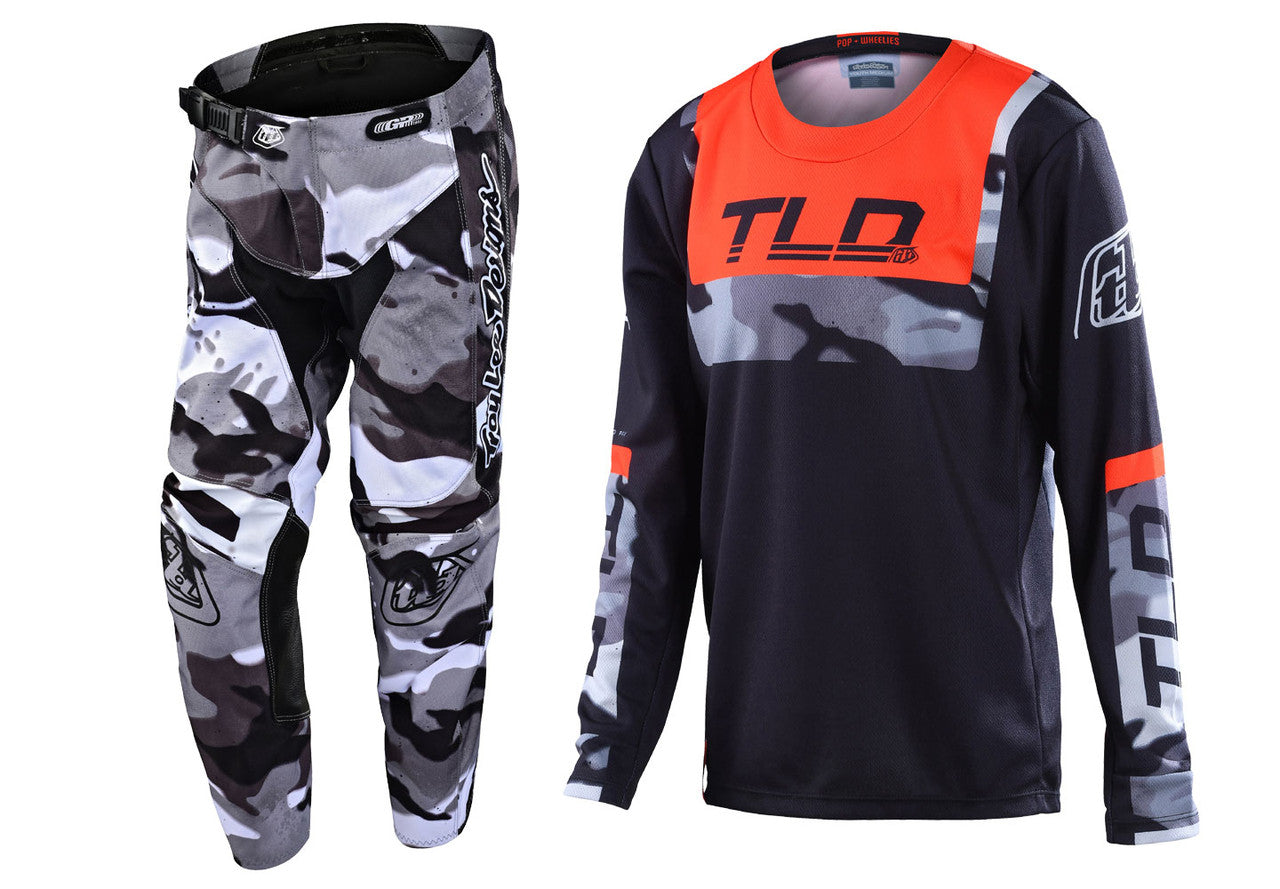 Troy Lee Designs 2022 Youth GP Jersey and Pant Combo Brazen Camo Black/Orange