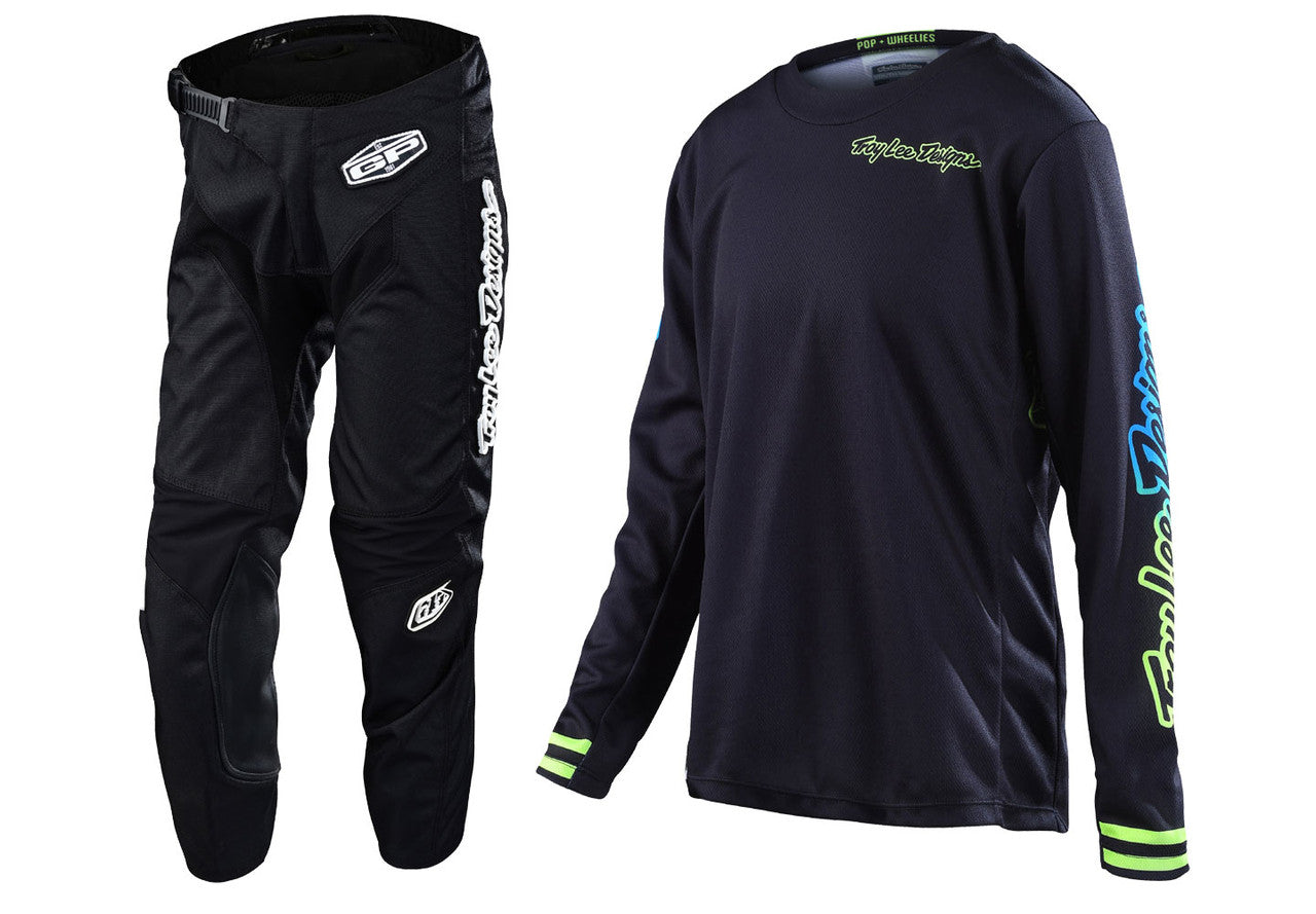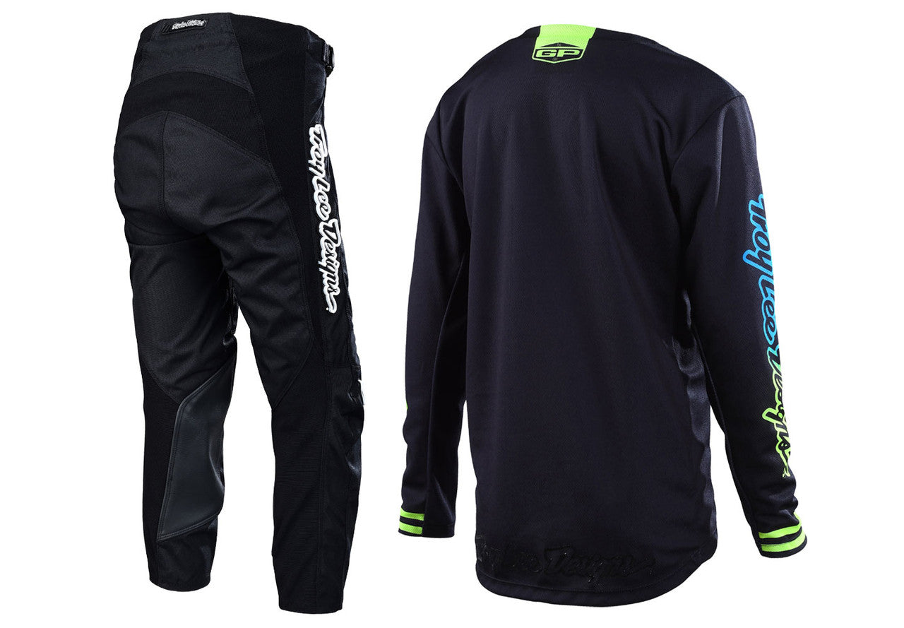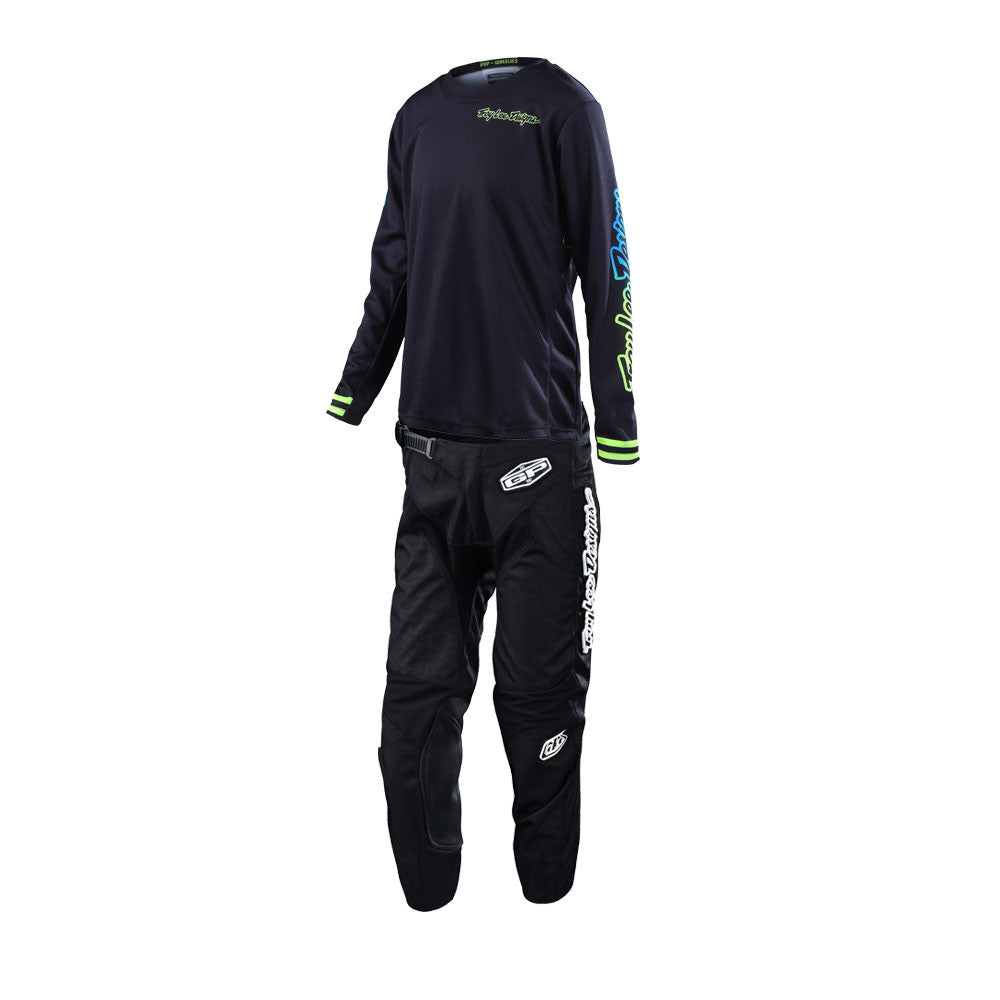 Troy Lee Designs 2022 Youth GP Jersey and Pant Combo Mono Black/Yellow/Cyan